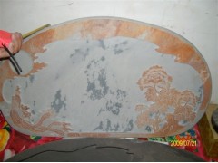 供应椭圆型石茶盘,浮雕金色凤凰,牡丹花浮雕,砂岩石茶盘